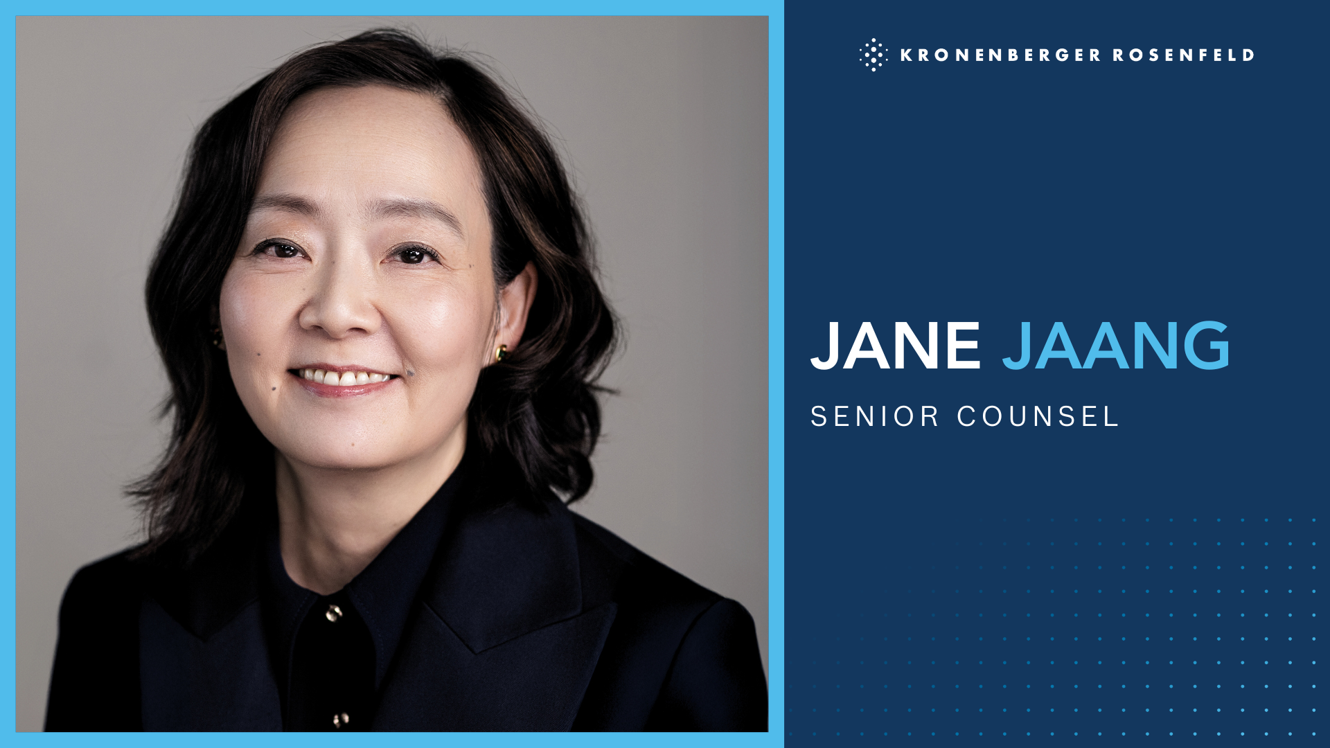 Kronenberger Rosenfeld, LLP welcomes Jane Jaang to the firm as Senior Counsel. Jane brings a wealth of experience in intellectual property and complex commercial litigation, enhancing the firm’s already robust practice in trademark, copyright, and unfair competition law.